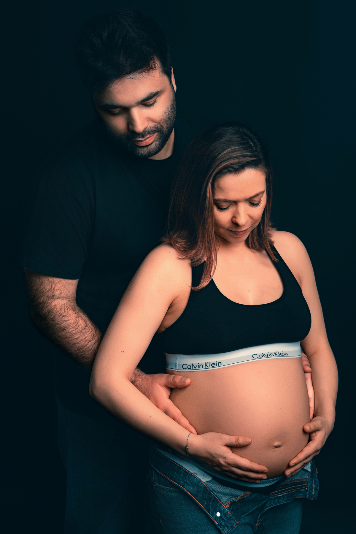fotografia a preto e branco de uma sessao de grávida em vila do conde